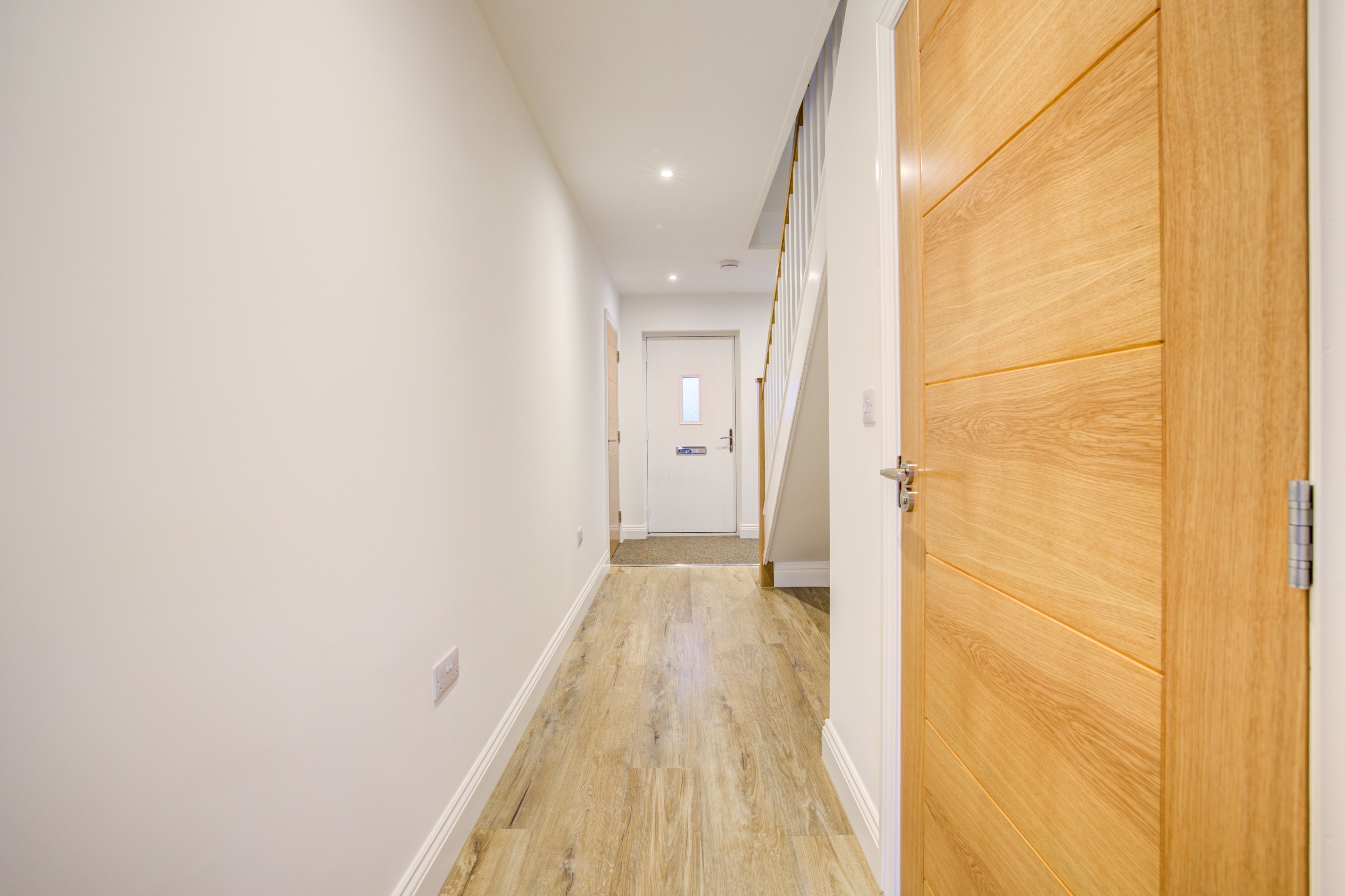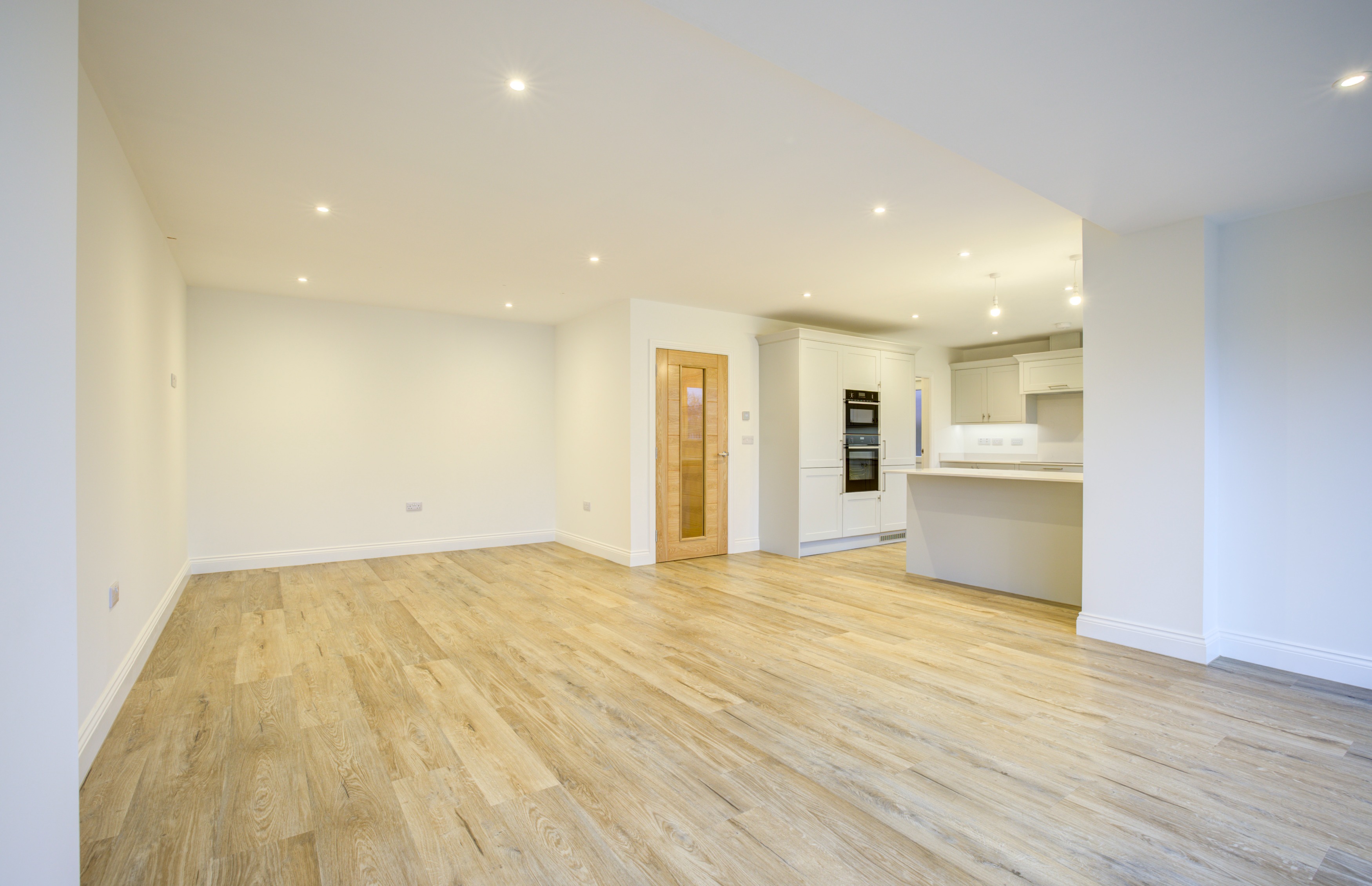 Forric Specification: Up to £12,000 of premium features included as standard: full flooring package, quartz worktops with splashbacks, NEFF appliances, oak doors throughout, underfloor heating, and landscaped turfed gardens.