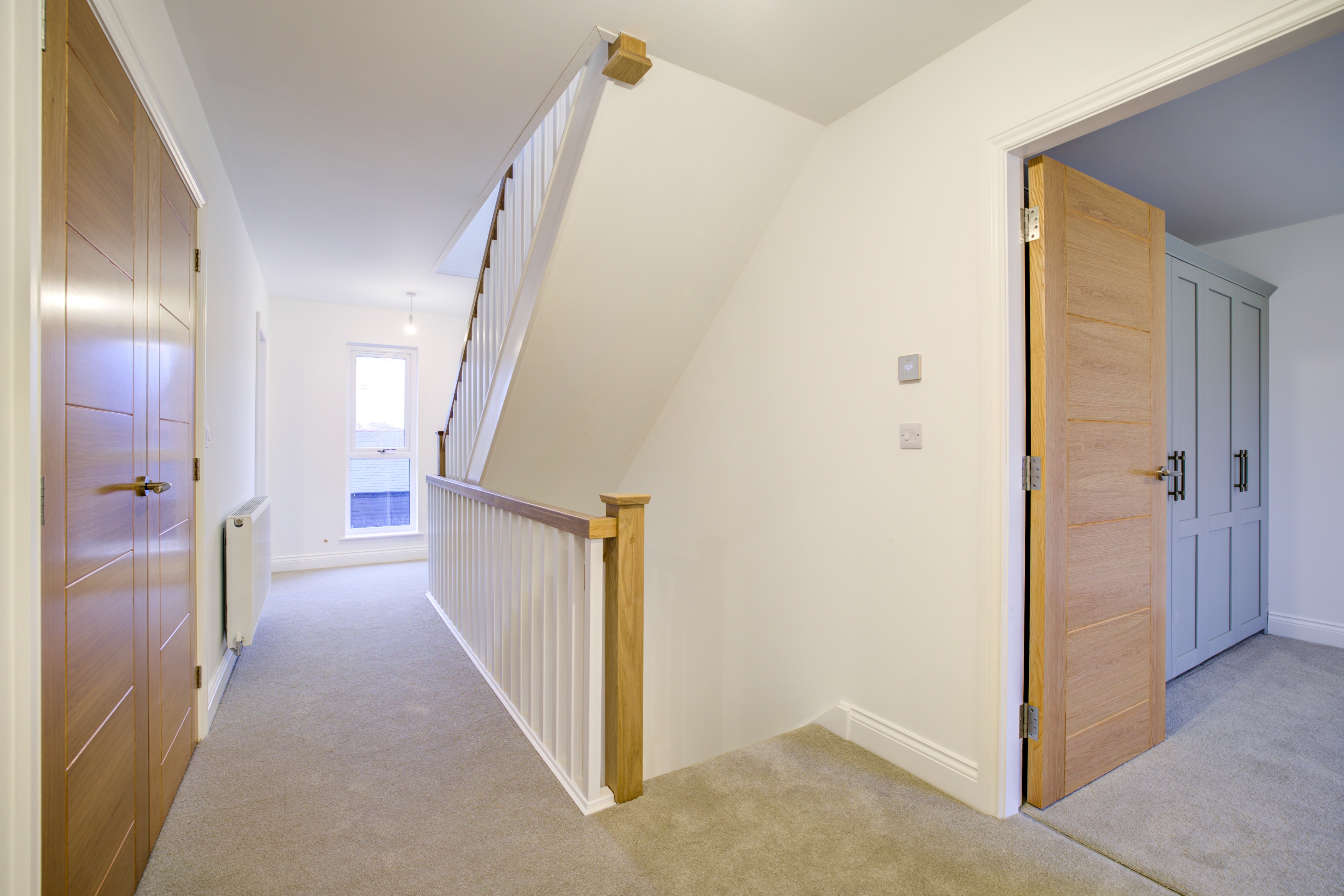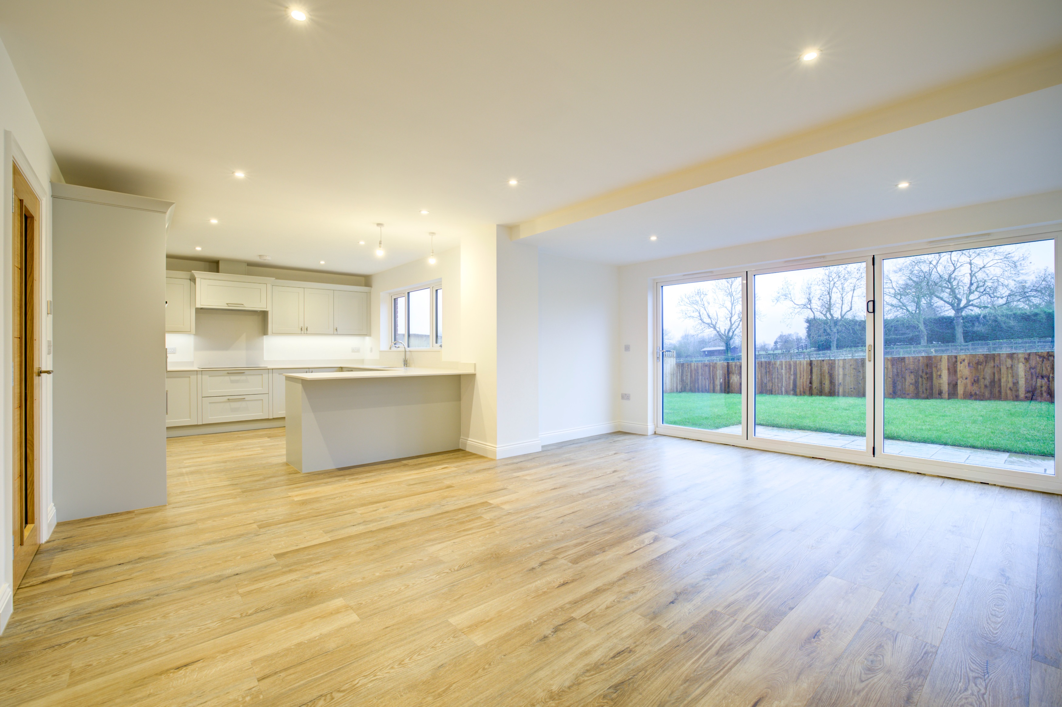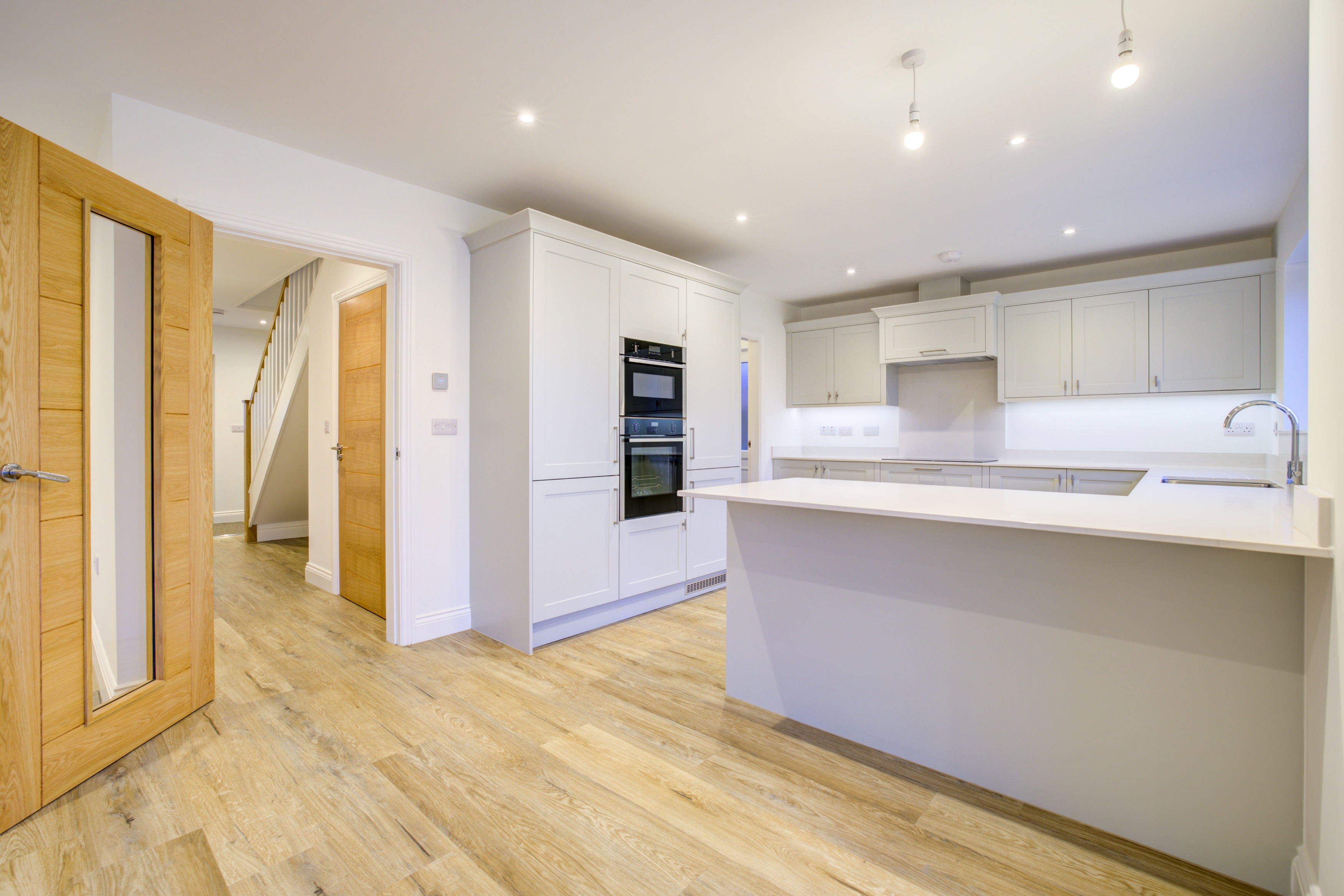Forric Specification: Up to £12,000 of premium features included as standard: full flooring package, quartz worktops with splashbacks, NEFF appliances, oak doors throughout, underfloor heating, and landscaped turfed gardens.