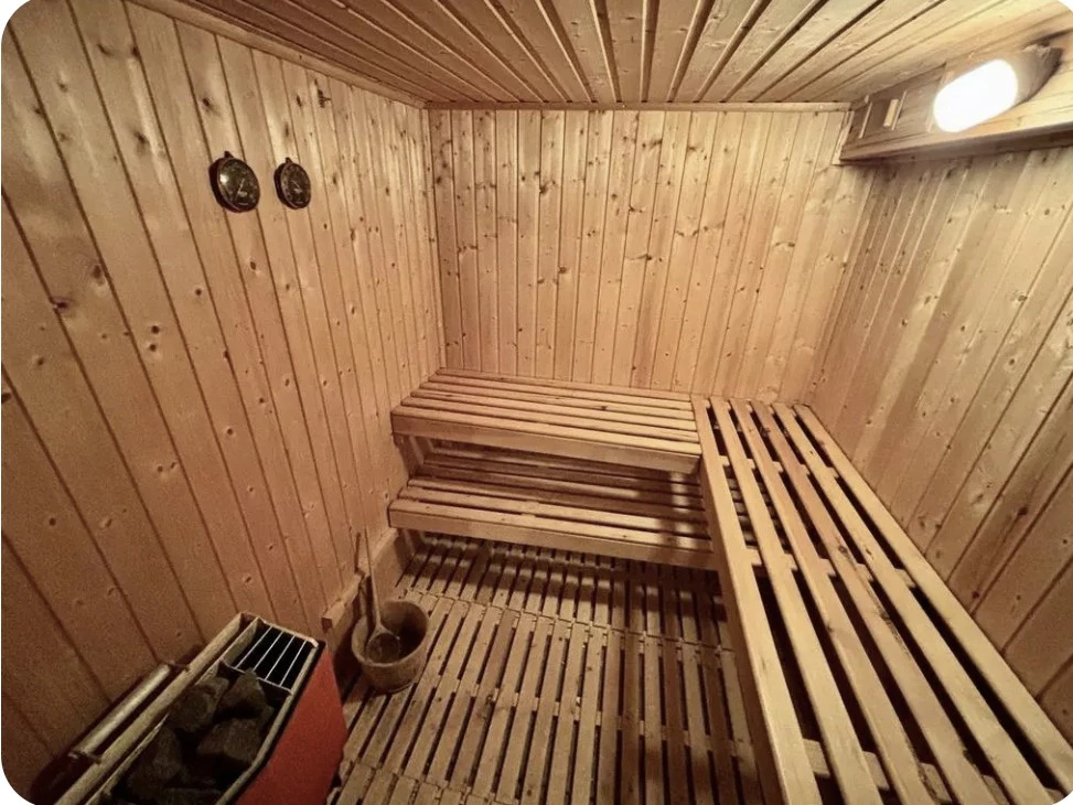 On the lower ground floor, the main bedroom features an ensuite, alongside two further double bedrooms, a family bathroom with a free-standing bath, and a laundry room with access to a sauna. A spiral staircase leads to the garden level, where a large reception room opens onto the garden, along with an additional double bedroom with built-in storage and an ensuite—ideal as an annexe or guest suite.