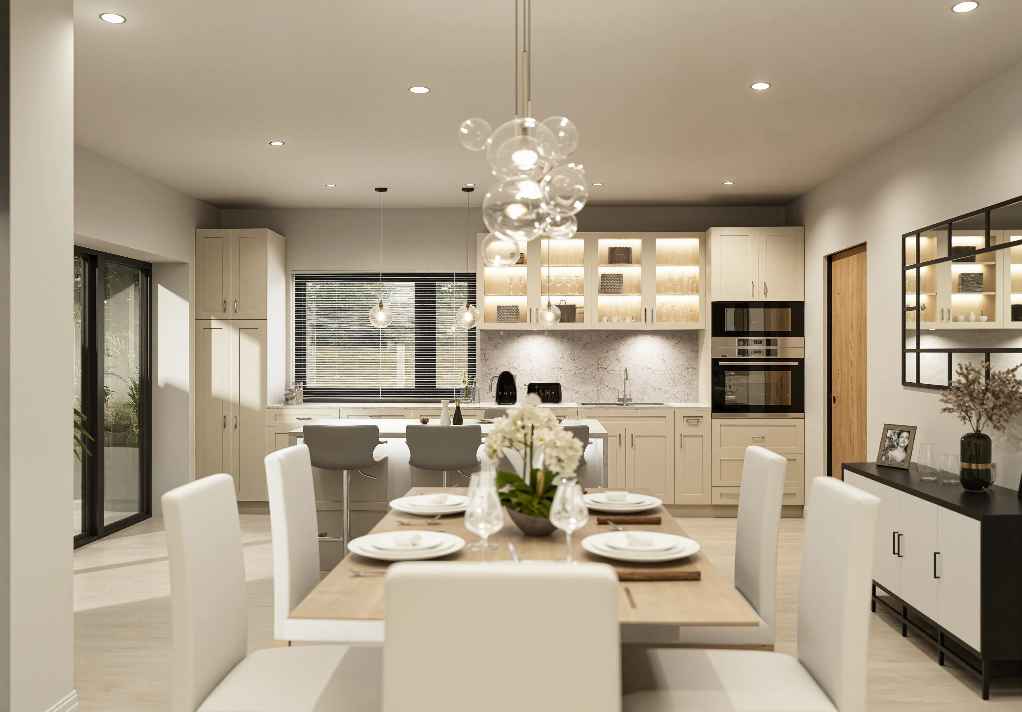 - Fully Integrated Kitchen With Sleek Quartz Worktops