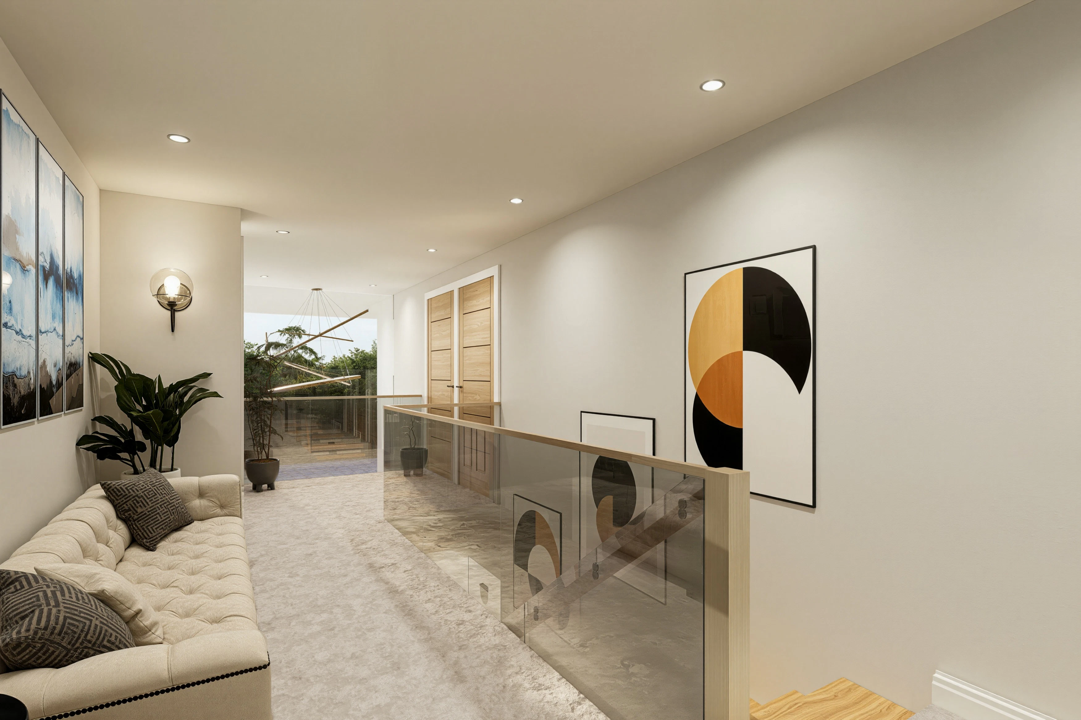 Upstairs, the master suite offers a true sense of sanctuary, complete with a luxurious four-piece en-suite and a private balcony overlooking the garden — a peaceful setting to unwind at any time of day. Bedrooms two and three each benefit from their own en-suite, while bedrooms two and four are enhanced by elegant Juliette balconies, inviting in an abundance of natural light and fresh air. A fifth bedroom and a beautifully tailored family bathroom complete the first floor.