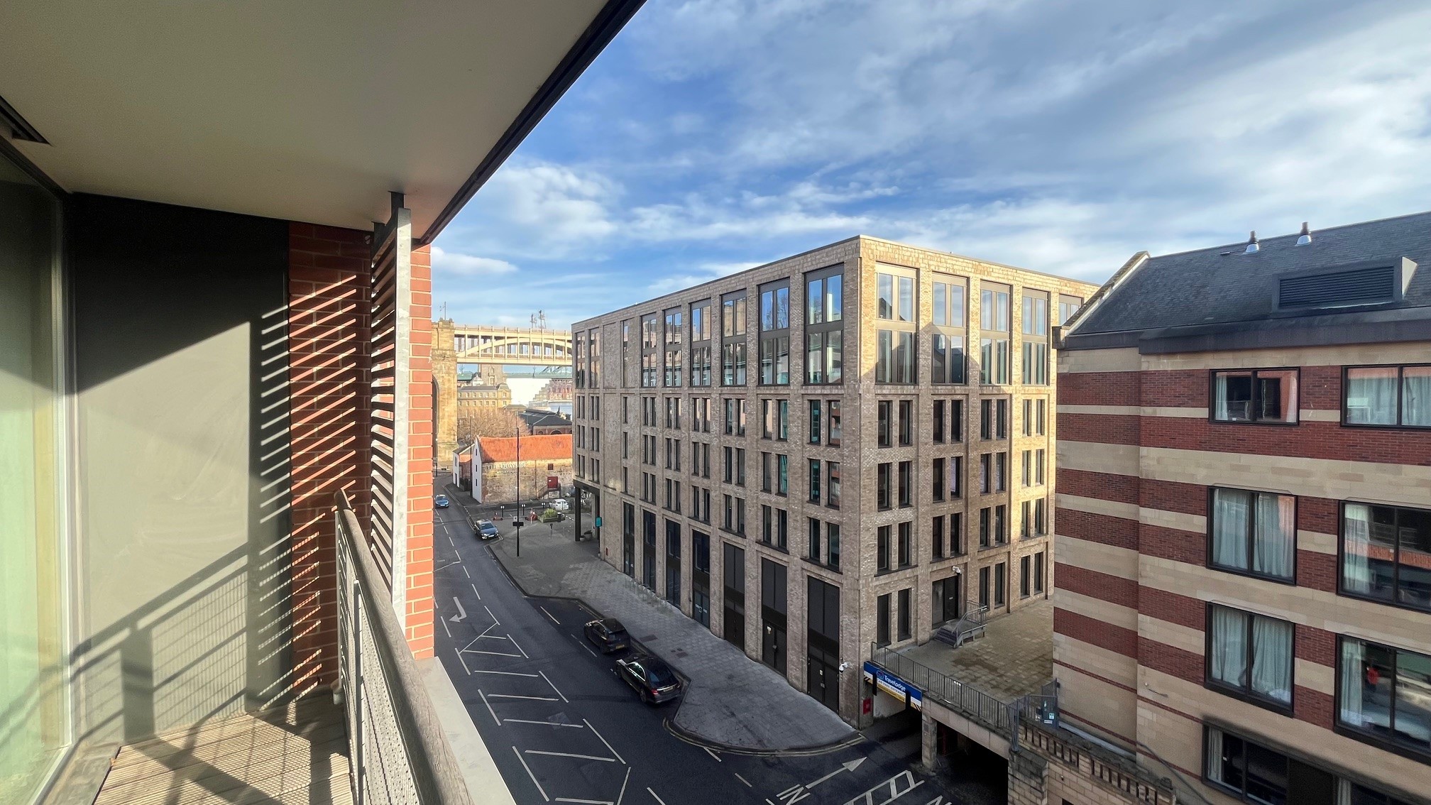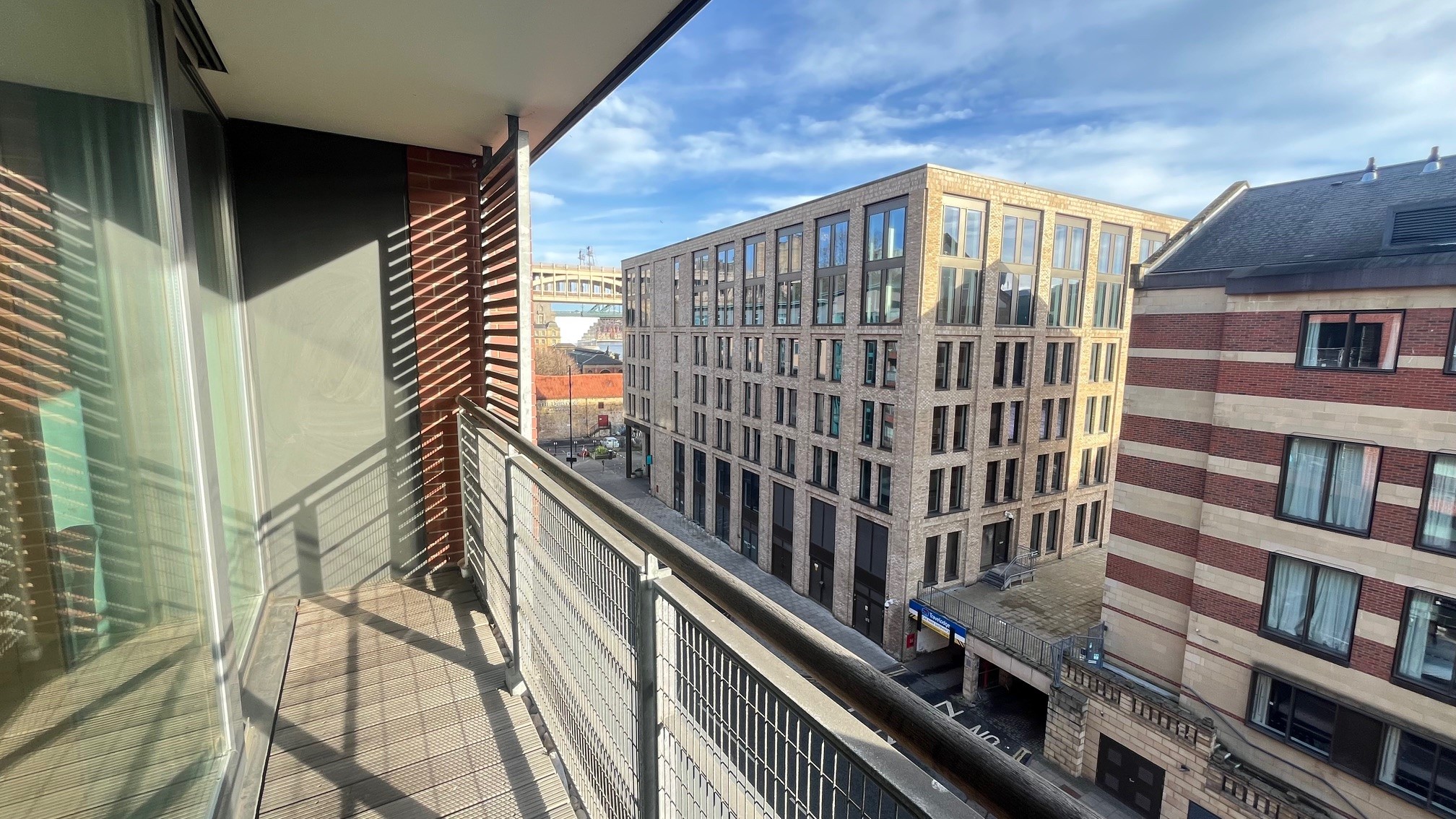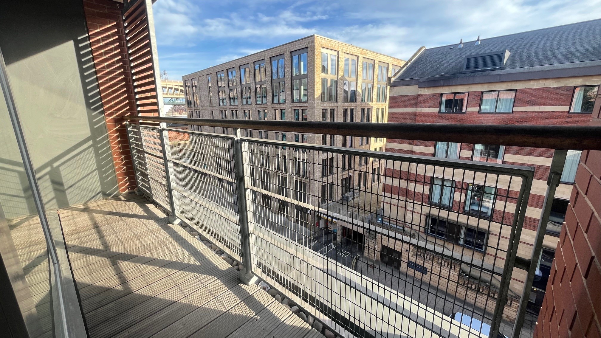 Wooden balcony with views across the Quayside.