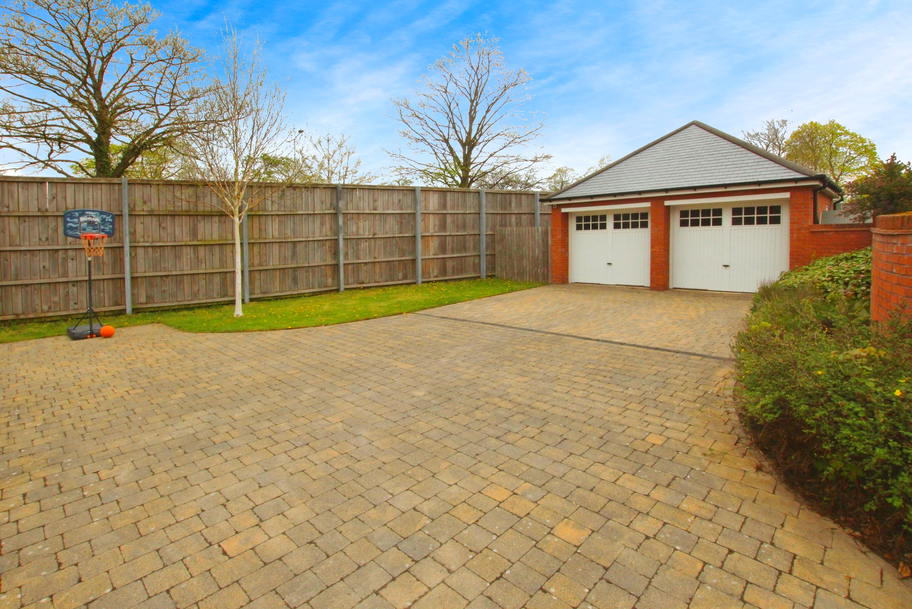 Externally, the home continues to impress. The generous outdoor space has been landscaped for ease of maintenance, with patio and garden areas offering a pleasant setting for relaxation or entertaining. A double detached garage and ample private parking enhance the convenience and usability of the home, offering excellent storage and security.