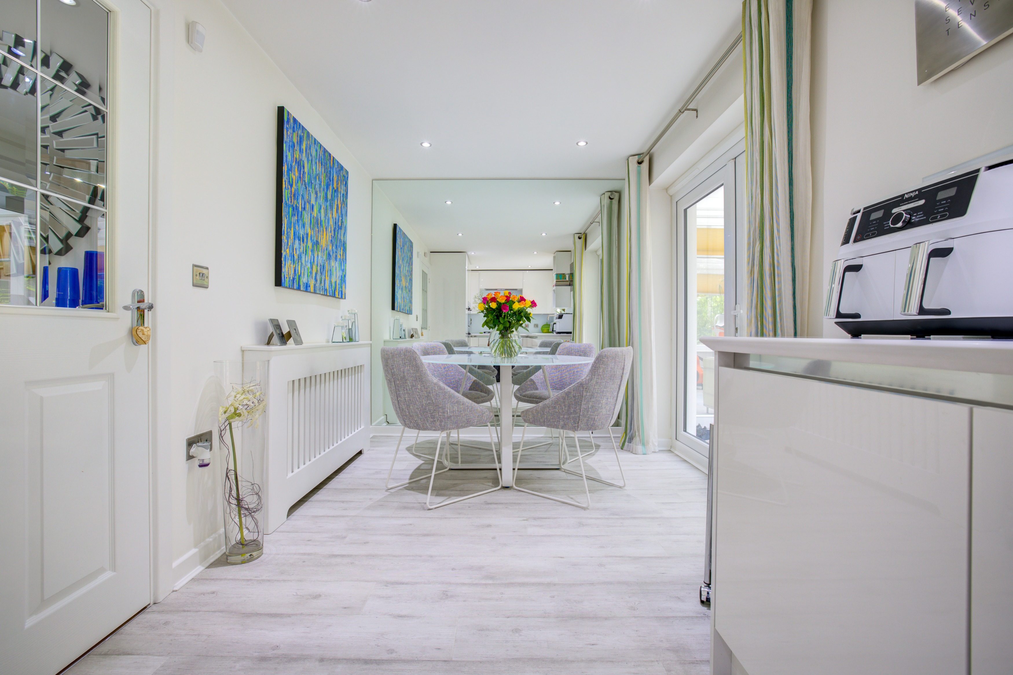 - Showpiece Kitchen/Dining Room – A stunning 19ft space with Corian worktops, high-spec integrated appliances, and sleek cabinetry