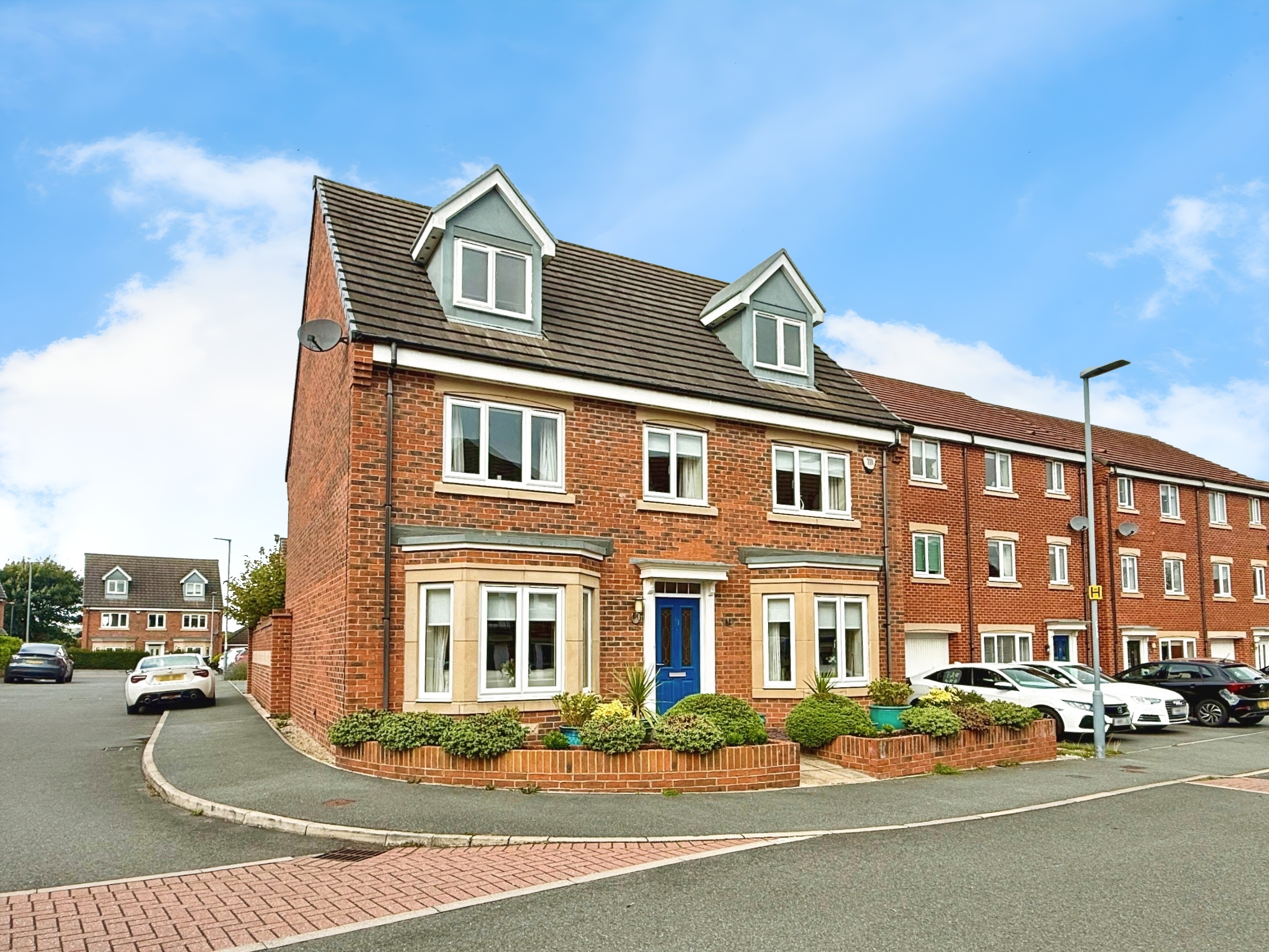 A beautifully presented and generously proportioned five-bedroom family home, situated in the highly sought-after residential area of Hutton Way, Durham. Set across three spacious floors, this exceptional property offers versatile living space, modern comforts, and the added benefit of detached garages with separately owned flats above